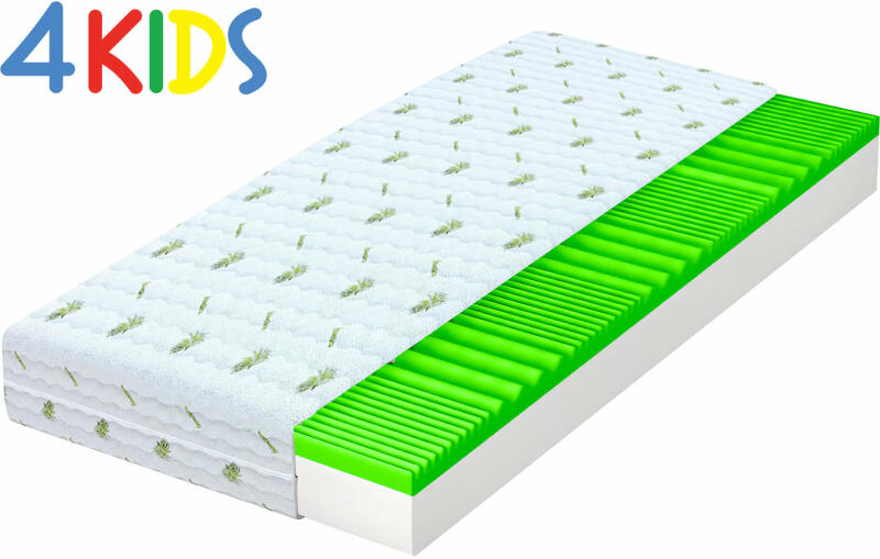 Kényelmes BRAVE hab matrac 90x180 gyerekeknek profilozott masszázshabbal. A minőségi T25-ös 25 kg/m3 sűrűségű PUR hab megadja a matracnak az alap magasságát és biztosítja hosszútávon a deformációktól való védelmét. A matrac felső részét anatómiailag zónákra osztott profilozott hab réteg alkotja. A hab profilozott felszíne lágyan masszírozza a bőrt és az izmokat, í