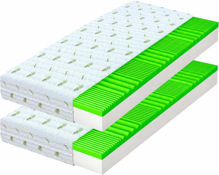 Minőségi kedvezményes 1+1 matrac Szerezze meg akciósan a BRAVE 90 x 200 cm habmatracunkat 21 cm vastagsággal, amely tökéletes két egyszemélyes ágyba, vagy a 180x200 cm franciaágyba. A kedvezményes csomagolás két egyforma matracot tartalmaz az 1+1 matrac akció keretein belül. A matrac poliretán hab és profilozott masszázshab kombinációjában készült. A minőségi T25-ös PUR