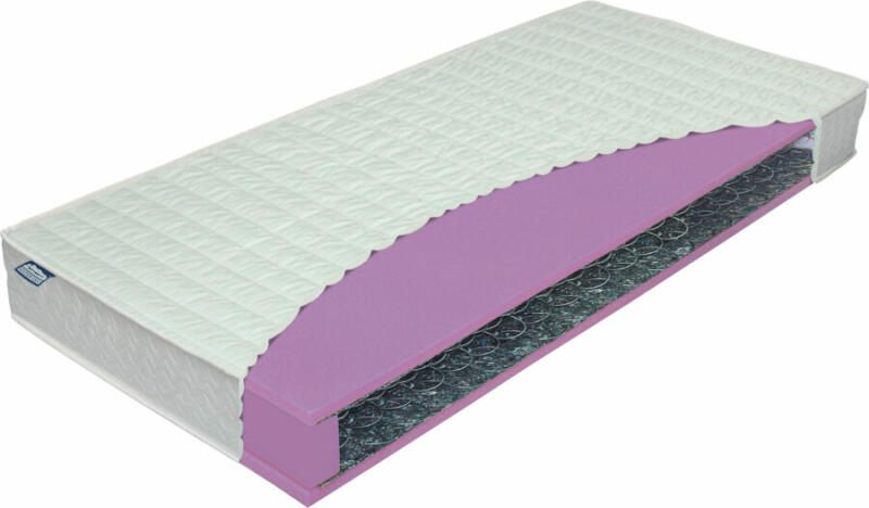 Kedvelt, félkemény rugózást biztosító, kedvező árkategóriájú 15cm vastag ágybetétünk, 2,4 mm vastag acél rugózattal és divatos, antiallergén külső szövettel. Kapható 5, szivacscsíkkal erősített, 3 testsúlyelosztási zónával rendelkező változata. A rugón lévő filcréteg a tökéletesebb súlyelosztást, a 2 cm-es pur-hab a kényelmet növeli. Huzata fix, nyári-nyá
