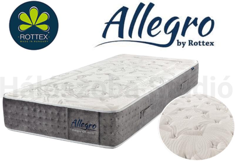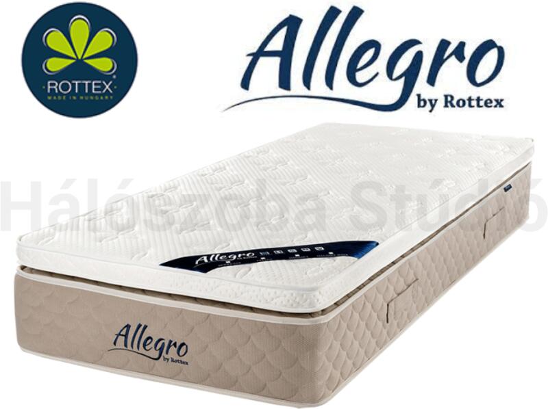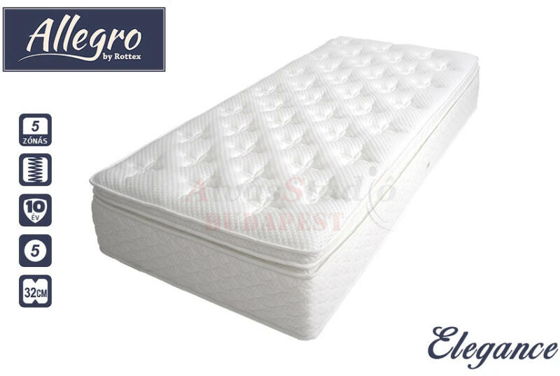 A Rottex Allegro Elegance egy 32 cm magas, közepesen kemény, 5 zónás táskarugós matrac, hideghab kényelmi réteggel. Az Allegro Moderato táskarugós matrac a kivételes luxust és a páratlan kényelmet jelenti. Mindkét oldalán top pillow párnázó réteg található, mely komfortot kölcsönöz a matracnak, miközben az 5 zónás zsákrugó rendszer stabilitás, alátámasztást nyújt