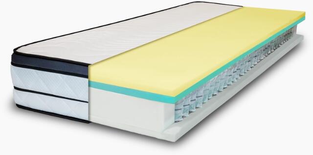 Félkemény táskarugós matrac. Felső párnázó rétege magas minőségű zónázott PUR-hab. Sűrű 6 menetes zsákrugórendszer. AloeVera-val impregnált huzata 60°c -ig mosható és antiallergén. Zeus minőségi 7 zónás zsákrugós matrac. A matrac felső párnázó rétege magas minőségű zónázott PUR-hab, mely kiváló alátámasztást biztosít. A poliuretán habok megfelelnek az