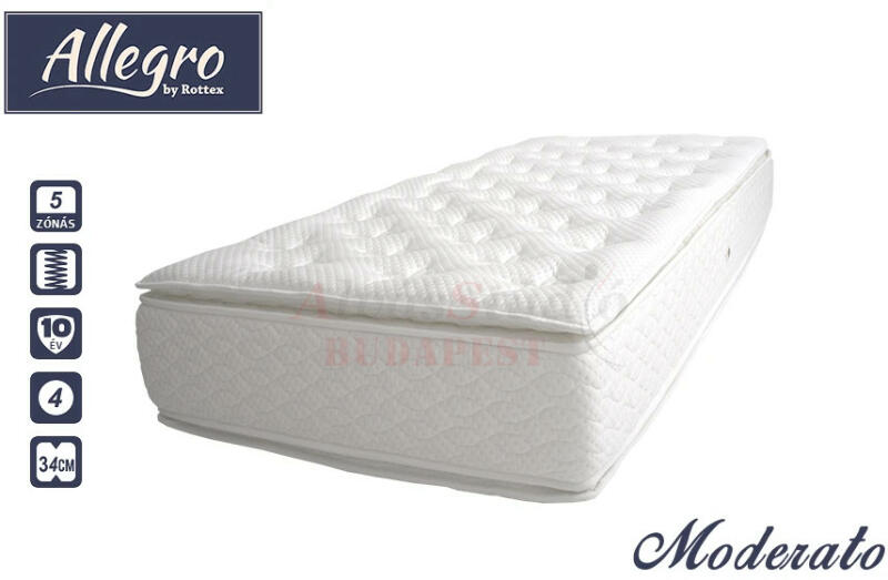 A Rottex Allegro Largo egy 32 cm magas, kemény, 7 zónás táskarugós matrac. A matrac kemény fekvési érzetet nyújt, amit a nagy sűrűségű komforthabnak és a 7 zónás zsákrugós rendszernek köszönhet. Magas súlykorláttal rendelkező matrac. Szövete a kasmír puhaságát idézi, finom tapintású. Az alapanyagok összetétele lehetővé teszi, hogy kényelmesen pihenjük ki a minde