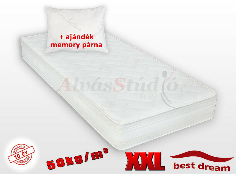 A Best Dream Siglo 50 egy 20 cm magas hideghab matrac. Kifejezetten nagy súllyal rendelkező emberek számára ajánljuk! Ezt a matracot magasabb testsúllyal rendelkező embereknek ajánljuk, mivel a matrac nagyon magas habsűrűségének köszönhetően tökéletes alátámasztást biztosít a 150kg feletti egyének számára is . Nagy sűrűségű, hideghabból készült, kemény matrac, mely