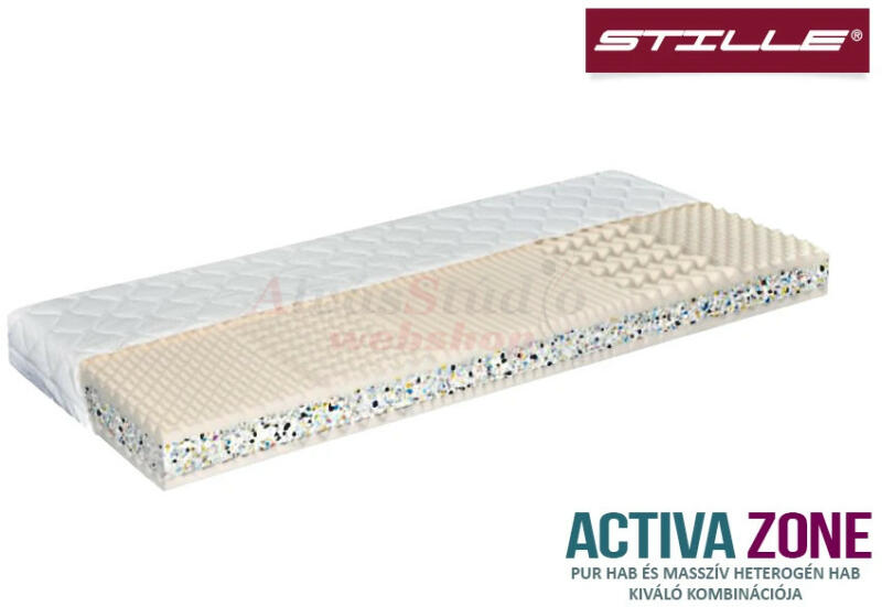 14 cm magas, komfortos fekvést nyújtó habmatrac. PUR hab és masszív heterogén hab kiváló kombinációja. Biztos tartás, és hosszú élettartam kedvező áron. Az Activa Zone matrac egy 14 cm magas, határozott, de komfortos fekvést nyújtó habmatrac. PUR hab és masszív heterogén hab kiváló kombinációja. A megerősített heterogén habból álló középréteg biztos tartást, é