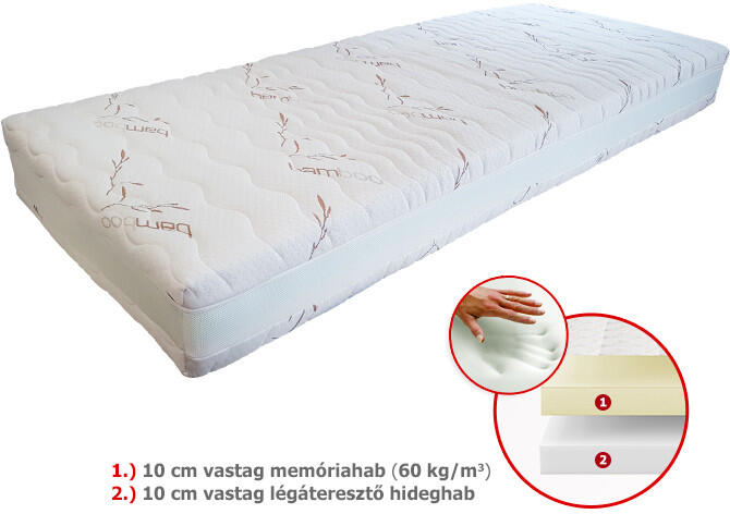 Az AlvásStúdió Memory X egy 20 cm magas (10+10) memory matrac. A speciális magas minőségű memory hab ( 60kg/m 3 ) 10 cm vastagságban, plusz a 10 cm magas cutfoam (hideghab) réteg biztosítja azt, hogy a matrac tökéletesen idomuljon a testhez és nyomáspontok nélküli alátámasztást biztosítson. A nyomás elosztása következtében nem alakulnak ki keringési problémák, ezáltal a