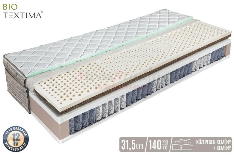 A Bio-Textima CLASSICO DeLuxe EXTRA egy 19 cm magas, közepesen kemény-kemény, vákuumcsomagolt matrac . A DeLuxe EXTRA vákuummatrac oldalanként eltérő keménységű, zónásított gumilatex fekfőfelülettel rendelkező hideghab matrac, memóriaghabbal steppelt aromakapszulás huzatban. Mi is az a vákuummatrac? A vákuummatracok több évtizedes tapasztalatszerzés és fejlesztés eredmén