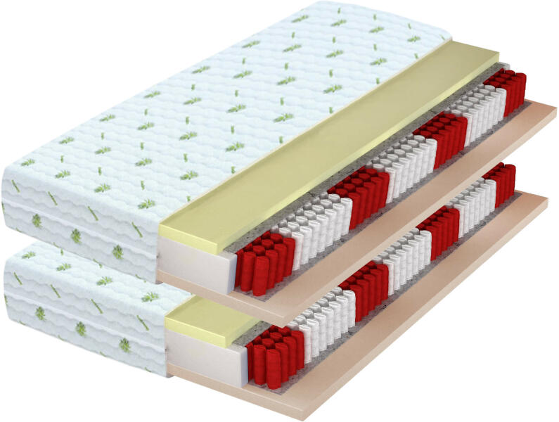 Két egyforma 90x200 cm matrac akciós dupla csomagolásban a 180x200 cm franciaágyba, esetleg két egyszemélyes ágyba vagy az emeletes ágyba. A rugós matrac Multipocket rugói NANOHard technológiával készültek. A matracban 506 /m2 rugó van, közülük mindegyik egy külön tasakban található. A matrac a legigényesebb vásárlóink igényeit is kielégíti, mivel a belsejében egy át