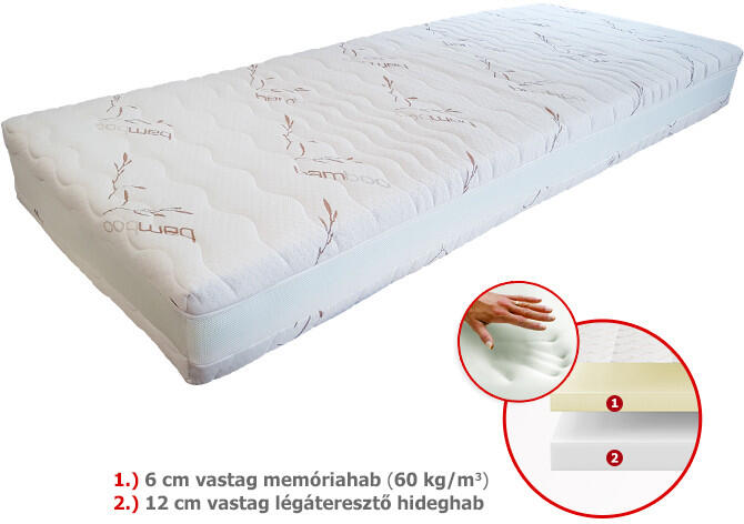 Klasszikus kemény memory matrac 4 cm nagy sűrűségű (60 kg/m3) memóriahabbal a tetején. Alul 10 cm nagy teherbírású hideghab réteggel. Lecipzározható mosható AloeVera huzat. ViscoMed Classic memóriahab matrac felső kényelmi rétege 4 cm vastag memory foam réteg mely kiváló teljesítményével megfelelő alátámasztást nyújt. (anyagsűrűség: 60 kg/m 3 ) A matrac alsó hordoz