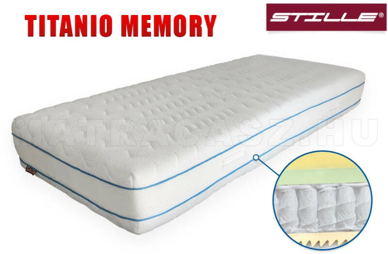 Markáns alátámasztás hatékony nyomáscsökkentő kényelmi rétegekkel. Ötmenetes acélrugók pontosabb formakövetéssel. Kétrétegű komfortréteg 4 cm-es emlékezőhabbal. A Titanio Memory táskarugós matracban az egyik legmarkánsabb alátámasztási erő ötvöződik a leghatékonyabb nyomáscsökkentő tulajdonsággal bíró kényelmi rétegekkel. A magrészben egy 2,2 mm vastag ötm