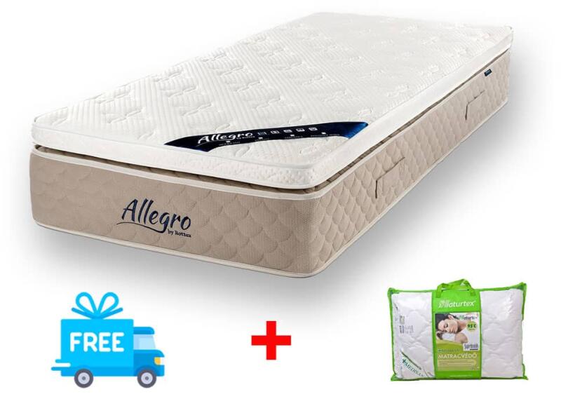 Az Allegro Elegance super matracot inkább kemény fekvőfelület jellemzi. A zsákrugós matracok közül rendkívüli kényelem és luxus kombinációját nyújtja az 5 zónával ellátott 18cm magasságú német edzett táskarugó és az egyedi komfortot nyújtó Enduro-Foam box-top réteg. Kitűnő választás, ha nem akarunk kompromisszumot kötni az elegancia rovására egy igazán masszív
