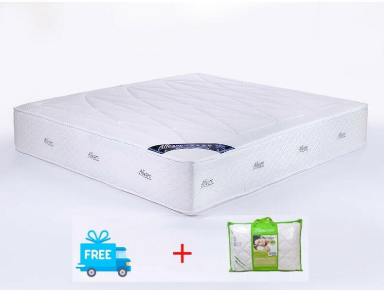 A 32 cm magas Allegro Vivo zsákrugós matrac belső magját a minőségi komforthabok alatt 7 fekvési komforttal rendelkező 18 cm magas acélrugók alkotják. Ez ilyen magas zsákrugó-rendszer egyedülálló Magyarországon. A megnövelt rugómagasságnak köszönhetően a német edzett acélrugók jobban tudják követni az emberi test vonalát. A Vivo táskarugós matrac huzata luxus megjele