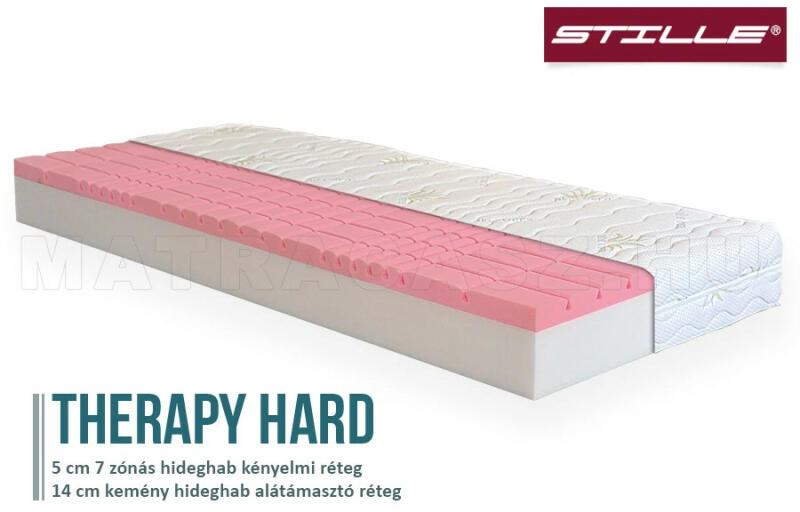 A Stille Therapy Hard egy 19 cm magas, 7 zónás, kemény vákuumcsomagolt hideghab matrac . A Stille Therapy Hard matrac a kemény fekvőfelületet kedvelőknek nagyon kényelmes érzetet nyújt. Jó ár-érték aránnyal, 7 ergonómiai zónás kialakítással, levehető huzattal rendelkező matrac. Fej/láb emelős ágyrácsoknál is használható matrac. Huzat: Antiallergén Silver huzat, leveh