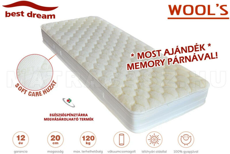 A Best Dream Wool's téli -nyári oldalas vákuummatrac kiváló tartást nyújt a testnek a rugalmasságának köszönhetően, miközben nem korlátozza az izmokat vagy a vérkeringést . A formatartó tulajdonsága optimális pihenést biztosít a test számára és teljes kényelmet nyújt. A matrac téli oldalához 100% merinói gyapjú réteg van steppelve, ami kiválóan tartja a meleget és