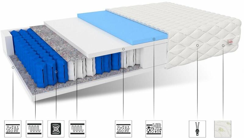 Táskarugós matrac A ViennaMax kétoldalas, táskarugós matrac gerincét a táskarugózat képezi. A táskarugók NanoHARD technológiával készültek, a kettős edzésű huzal jelentősen meghosszabbítja az élettartamukat. A 7 különböző keménységű zóna használatának köszönhetően a matrac biztosítja a test ergonómiailag tökéletes helyzetét pihenés közben. A rugók egymást