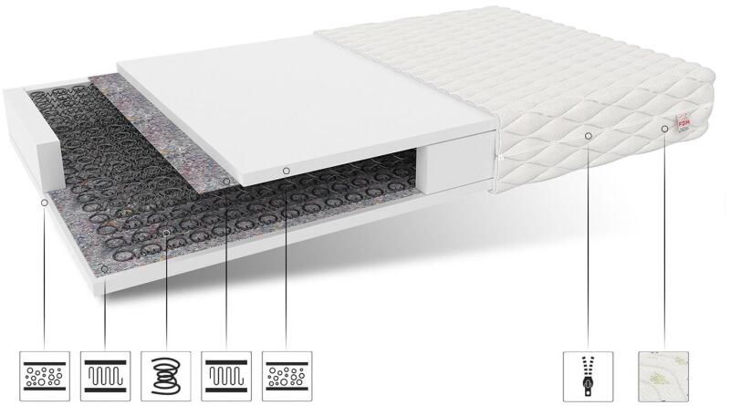 Bonell rugós matrac A PESARO bonell rugós matrac rugói kiváló minőségű, megnövelt élettartamú dróthuzalból készültek. A rugózat biztosítja a megfelelő légáramlást is az ágybetét belsejében. Minden egyes mozgásnál a rugók "kipumpálják" a belső levegőt. A rugózat további jellemzője, hogy minél nagyobb a súly a matracon, a rugózat annál nagyobb felületi ellenál