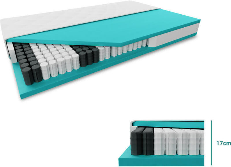 A PUR habból készült SOMNIA 17 cm-es táskarugós matrac a megfelelő választás mindazok számára, akik a minőségi és kényelmes alvást kedvelik. A matrac standard mérete 180 x 200 cm. A matrac magassága 17 cm . A matrac anyaga PUR hab és táskarugós technológia . A matrac közepes keménységű H3 (H1-H5 keménységi tartomány), és legfeljebb 130 kg tömegű emberek számára alk