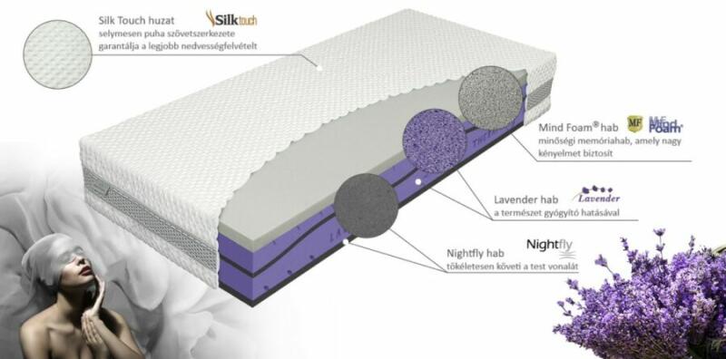 TECHNIKAI PARAMÉTEREK Magasság27 cmKeménységFiziorendszer7 (merevségi zónák száma)Teherbírás150 kgMatrac mag összetételInnovatív habok kombinációjából készült: Levendula hab, Mindfoam memóriahab, Nightfly habHuzatSilk Touch huzat 3D oldalszellőzéssel, levehető, max. 60°C-ig moshatóEgészségügyi problémákraDerékfájás, igényes alvókAjánlott ágyrácsRugalmasGaranci