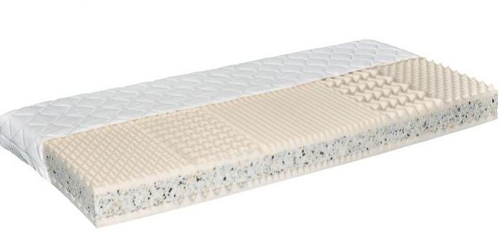 Szendvics matrac Cati PUR hab és RE (heterogén) hab kombinációja 5 zónás A matrac különleges kialakítása jó szellőzést biztosít Kétoldalas, használható fix és állítható ágyrácshoz egyaránt Levehető Silver huzat (100 % polyester), 60 °C-on mosható Rendelhető Aloe vera Proactive huzattal Matrac magassága 16 cm Mérete: 90x200 cm A közepesen igazán kemény matrac Matrac
