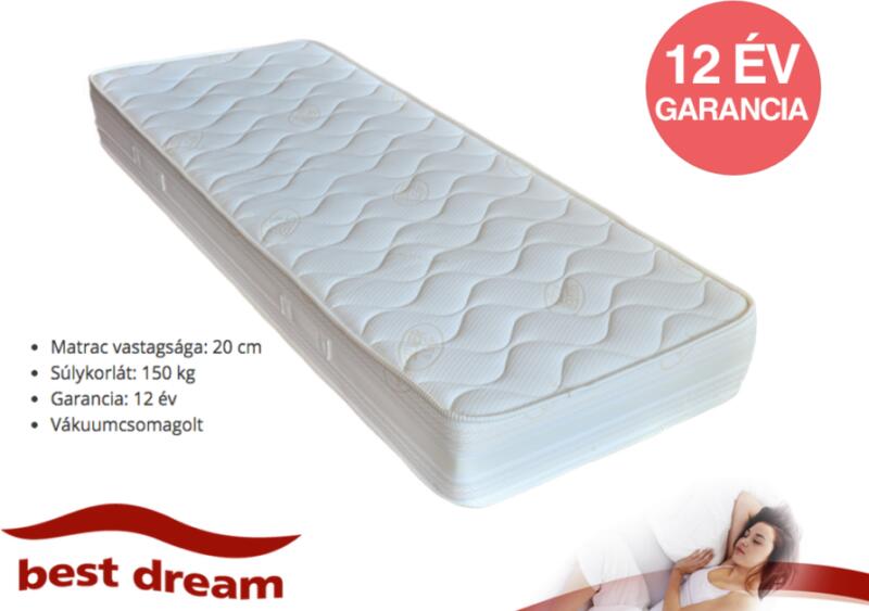 A Best Dream Pocket Spring egy 20 cm magas, téli-nyári oldallal rendelkező zsákrugós matrac. Ez a téli-nyári oldalas, zsákrugós matrac a félkemény, de rugalmas ágybetétek közé tartozik és nem áthullámzó, mint a régi bonell-rugós matracok. Kiváló formakövetése miatt minden alváspozícióban kényelmes és pihentető éjszakákat biztosít Önnek. Optimálisan támasztja al
