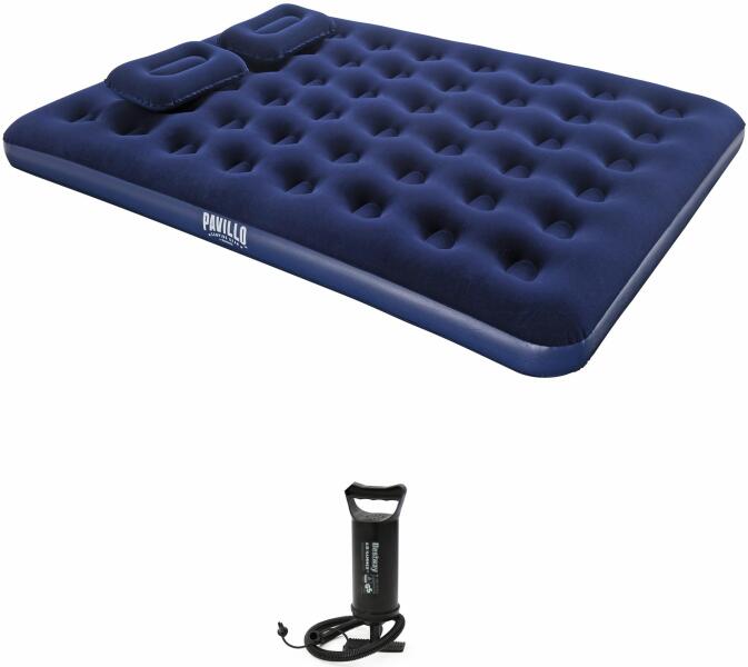 Double mattress with pump - BESTWAY 67374 DOUBLE VELOR MATTRESS WITH PUMP AND CUSHIONS BESTWAY 67374 VELOR COVER + 2 PILLOWS – it guarantees an extremely pleasant rest, thanks to the soft structure of velor. In addition, the material is extremely durable, thanks to which the mattress is more resistant to damage. SAFETY VALVE - the mattress is equipped with a special valve that will definitely fa