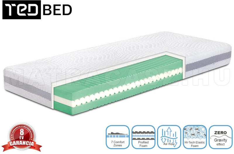20 cm vastag 7 zónás matrac, magas minőségű HR légáteresztő hideg-habokból, több rétegű profilozással. Lágy-félkemény matrac könnyed légies érzetet nyújt. Az új-generációs 7 zónás Ergo Disc matrac a test anatómiai felépítését figyelembe véve lett megtervezve. Magas minőségű légáteresztő hideg-habokból (30kg/m 3 ) készült, a legújabb gyártástechnológia se