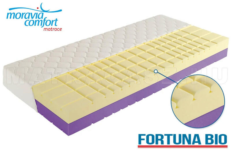 Fortuna Bio : szójabab kipréselt olajából habosított ágybetét. Két oldalán eltérő keménységgel. 9 cm vastag, nagy teherbírású, 45 kg/m3 sűrű rugalmas hideghab. 7 ergonómia zónával. Mikroklimatikus háromdimenziós kockavágási technológia. Viszkózszálat tartalmazó Moravia huzattal. Amíg könnyedén mozgunk, addig szinte el sem tudjuk képzelni, milyen is, ha egyszer csak