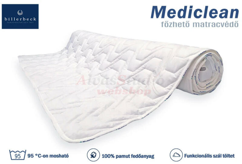 A 95 C˚-on főzhető Billerbeck MediClean matracvédő kifejezetten allergiás betegségekben szenvedők számára ajánlott, amely egyedülálló, nagyszerű tulajdonságai révén hatékonyan csökkenti az allergiával járó kellemetlen tüneteket. Megnövelt páraáteresztő képességgel rendelkező, puha, formatartó, bőrbarát anyagok felhasználásával készült. A 95 C˚-on főzhető B