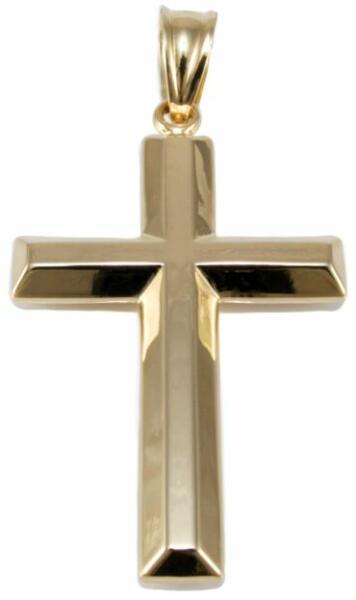 Modern stílusú, méreténél fogva igen mutatós, ez a fényes, üreges kialakítású arany kereszt medál.