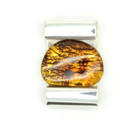 925 sterling tisztaságú ezüst medál, borostyánnal. Méret: 2,9 cm x 1,7 cm Súly: 8,36 gramm