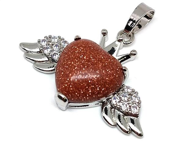 Goldstone vörös medál (szárny szív fém Kína Ásvány medál) Egyedi ásvány ékszer.
