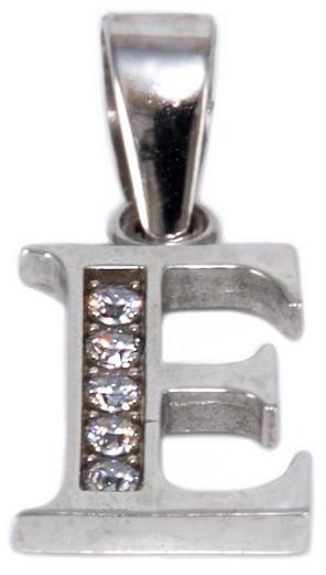 Kedvelt fazonú, cirkónia kősorral ékített, ródiummal bevont "E" betű arany medál.