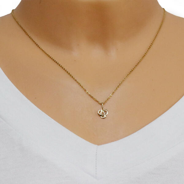 A 14K sárga arany medál egy hármas kelta csomót ábrázol. A medál felülete tükörsima és fényes. A láncra kerülő láncszem hosszúkás alakú, és felfelé enyhén kiszélesedik. A medál méretei: 8 x 9 mm Medál súlya: 0,25 g A láncra kerülő szem szélessége: 1,5 mm Fémjel - Van Az ár egy darabra vonatkozik! A lánc nem tartozék!