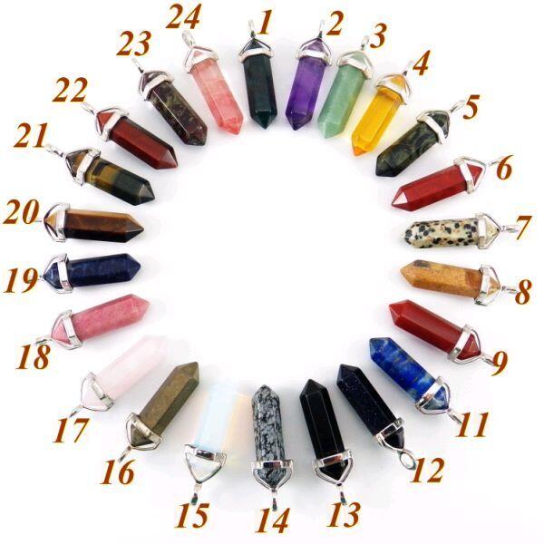 Két-csúcsú, hatszögletűre csiszolt féldrágakő medálkák. A csúcsos forma kialakítása miatt ingázásra is alkalmas. Medál mérete: 8*30-35mm Teljes magassága: 40mm A medál a kép száma alapján választható A hegyikristály gyógyhatása