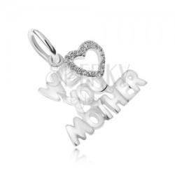Medál 925 ezüstből, fényes, sima felülettel és "We love you mother" - "Szeretünk Téged anya" felirattal, amelyben a love szó egy szemcsés felületű szív körvonallal van helyettesítve. A medál méretei: 17 x 13 mmA medál súlya: 1,1 gA láncra kerülő szem szélessége: 5 mmFémjelzéssel ellátott. Medál lánc nélkül.