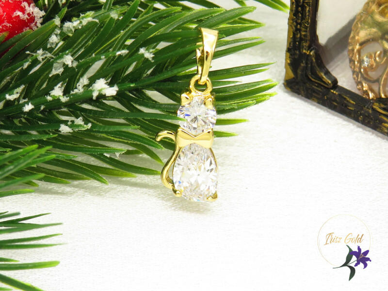 Antiallergén csupa cirkóna kőből cica medál Szin: 14K Méret:20x10 mm A forgalmazott divatékszerek alapanyaga nikkel és ólommentes ezért többnyire nem okoznak allergiás tüneteket, nyugodtan hordhatják fémérzékeny emberek is. Általában nem színezik a bőrt és más divatékszerekhez képest nagyságrendekkel jobb kopásállósággal rendelkeznek. A fehér (ezüst) színű ékszer