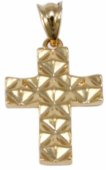 Domború mintával díszített, 3D hatású, fényes, kis méretű arany kereszt medál.