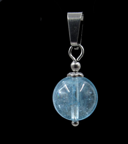Természetes kék topáz ásványból készítettem medálkát. A topáz nagyon szép, áttetsző kék színű, gyakran gyönyörű, szivárvány színű zárványokkal. A medálhoz illő kék topáz fülbevaló is vásárolható. Minden ékszer orvosi nemesacél szerelékkel készült. Az topáz métere: 10-11mm Bővebb információ "ADATOK PARAMÉTEREK" fül alatt. Topáz vélt hatása