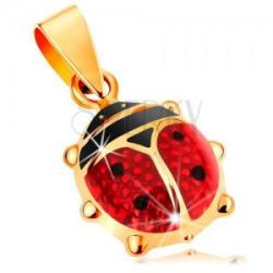 A 14K sárga arany medált egy fényes, kidomborodó katicabogár alkotja piros-fekete színű fénymázzal bevonva. A hátsó oldala lapos és sima felületű. A hosszúkás láncra kerülő szem felfelé enyhén szélesedik. Medál méretei: 8 x 9 mmMedál súlya: 0,38 gA láncra kerülő szem szélessége: 2 mmFémjelzéssel ellátott. Medál lánc nélkül.