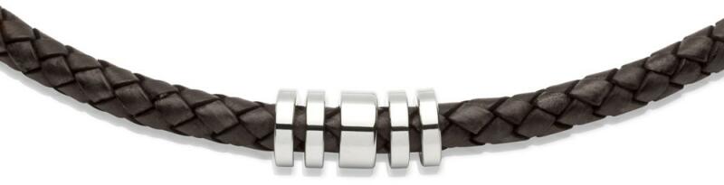 Rozsdamentes acél és bőr férfi nyaklánc. Sötétbarna színű természetes bőr. Biztonsági zár. Többféle méretben. Cikkszám : K49DB Szín : Sötétbarna Nyaklánc anyaga : Rozsdamentes acél és bőr Méretválaszték (hossza) : 45 , 50 cm Bőr vastagsága : 6mm Nikkelmentes : Igen Vízállóság : nem vízálló Garancia : A termékre egy év garancia érvényes!