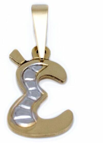 Modern stílusú, kedvelt fazonú, ródiummal és véséssel díszített, kétszínű arany "É" betű medál.