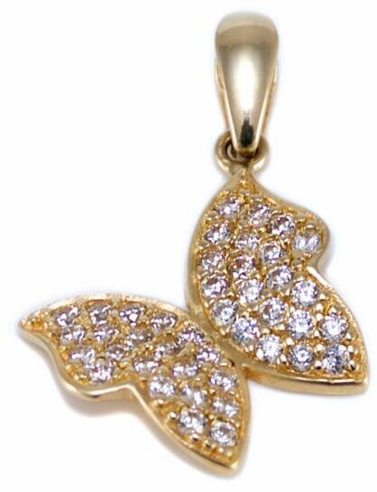 Modern stílusú, kedvelt fazonú, cirkónia kővel ékített, lepke arany medál.