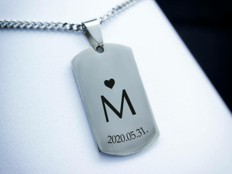 A Te varázslatod! A téglalap medálra egy számodra fontos keresztnév kezdőbetűjét, és egy dátumot gravírozunk! (Lézer gravírozott téglalap alakú nemesacél medál - 42×24 mm méretű)A kollekciónk azért kelt életre, hogy ne csak szívünkbe, hanem ékszerként is hordhassuk ezt a varázslatot. Ebbe az acél lap medálba egy betűt és egy dátumot gravírozunk. Az ár tartalmazza