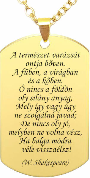 Ez az egyedi medál dizájn csak nálunk kapható. A legjobb gesztus és ajándékötlet! Választható rozsdamentes alumínium medál, vagy nemesacél tükörpolírozott kivitel is, arany vagy ezüst színekben. Az alapár az alumínium medálra vonatkozik lánccal vagy kulcstartóval együtt (válassz a listából, vagy rendeléskor írd be a MEGJEGYZÉSBE, hogy mire szereljük fel a medált, é