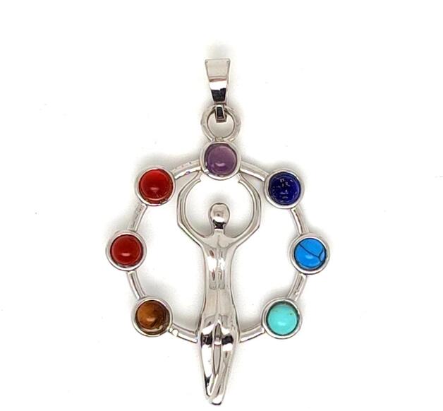 Medál (ember alak fém chakra Kína Ásvány medál) Egyedi ásvány ékszer.