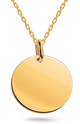 Az egyszerű lapos medál kerek formájú, erősen fényes felülettel.