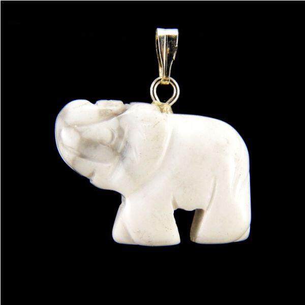 Howlit ásványból faragott elefánt medál. Medál mérete: 22x18mm Az howlit gyógyhatása