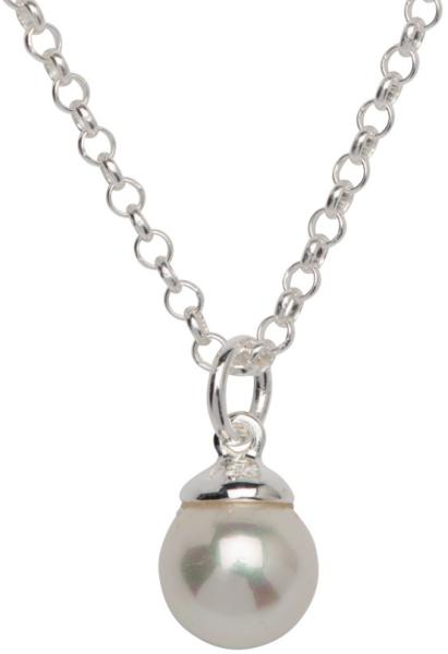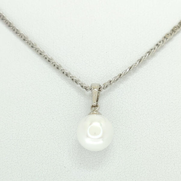 Ezüstszínű foglalatban elhelyezkedő, csillogó fehér tekla gyöngy medál. Időtálló ékszer, víz hatására nem feketedik. Antiallergén ékszer. Medál átmérője: 9 mm. A nyakláncok különböző méretben kérhetők, ezek mintája esetleg eltérhet a képen láthatótól, szélessége 2 mm vagy 3 mm. Az antiallergén ékszerek olyan fémötvözetből készülnek, melyek nem irritálj
