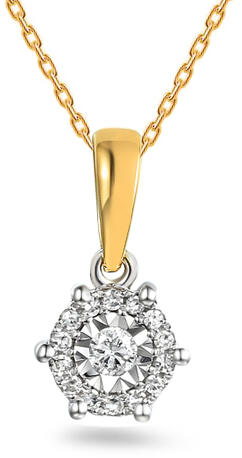 A női medál egy finom kiegészítő, amely ötvözi a sárga arany szépségét és a drágakő csillogását. A medál 14k aranyból készült, ami nagy értéket és hosszú élettartamot biztosít. Az ékszert 0,02 karát súlyú, kiváló H színű, SI1 tisztaságú, kiváló csiszolású és szimmetriájú gyémántok díszítik, amelyek biztosítják, hogy kis méretük ellenére csillogó