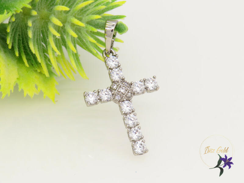 Antiallergén gazdagon díszített kereszt medál Szin: rodium (ezüst) Méret:30x25mm A forgalmazott divatékszerek alapanyaga nikkel és ólommentes ezért többnyire nem okoznak allergiás tüneteket, nyugodtan hordhatják fémérzékeny emberek is. Általában nem színezik a bőrt és más divatékszerekhez képest nagyságrendekkel jobb kopásállósággal rendelkeznek. A fehér (ezüst) sz