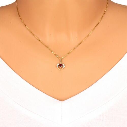 Medál 14K sárga aranyból vékony, fényes szív körvonalból, az oldalain három, kerek cirkóniával díszítve. A kontúr közepén egy csiszolt, szívecskés gránát található piros színben. A láncra kerülő szem hosszúkás, fényes és sima. A medál méretei: 11 x 9 mmA medál súlya: 0,7 gA láncra kerülő szem szélessége: 1,5 mmFémjelzéssel ellátott. Medál lánc nélkül.
